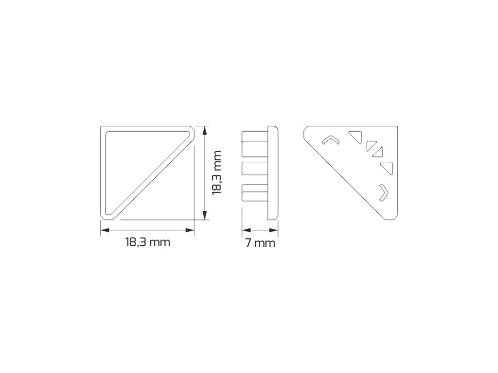 Koncovka pro profil Corner v šedé barvě vyrobena z plastu. Koncovky slouží pro ukončení Led profilu Corner. Koncovky kryjí profil aby do něj nevstoupil prach a nečistoty.