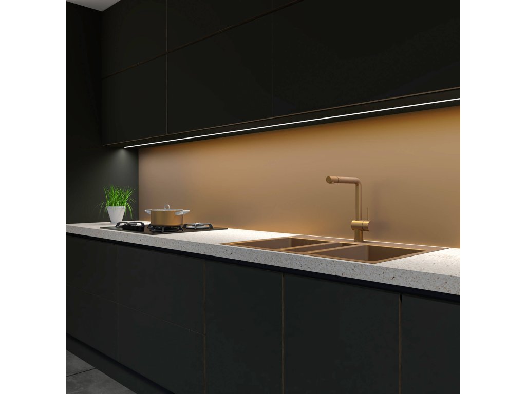 LED profil Inline s mléčnou krytkou, vhodný pro zafrézování do kuchyňských skříněk či nábytku obecně. Využijte jako osvětlení kuchyňské linky. Zvolte intenzivnější LED pásek aby kvalitně svítil i přes mléčnou krytku.