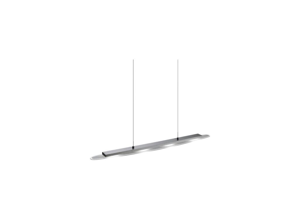 Moderní závěsný lustr s úspornými LED diodami v teplé barvě (3000K) je vyroben z matné oceli a satinovaného skla. Krásně vynikne nad jídelním či konferenčním stolem. Skladem poslední 2 kusy.