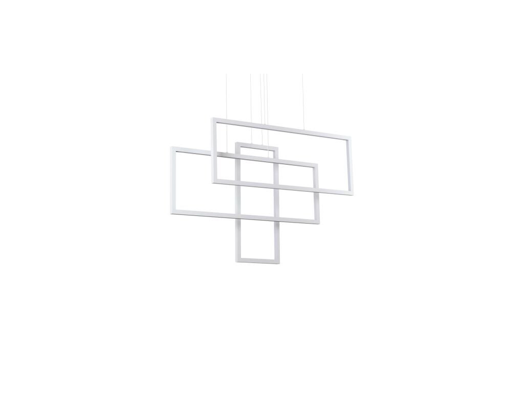 Jedinečné závěsné svítidlo Frame z kolekce designového osvětlení italské značky Ideal Lux v atraktivní obdélníkové verzi je velmi elegantní a skvěle se hodí do moderně zařízených interiérů. Hranatá základna a tvarovaný rám svítidla sestavený ze tří obdélníků různých velikostí je zhotoven z matně černého lakovaného kovu. Výšku závěsů je možné libovolně regulovat.