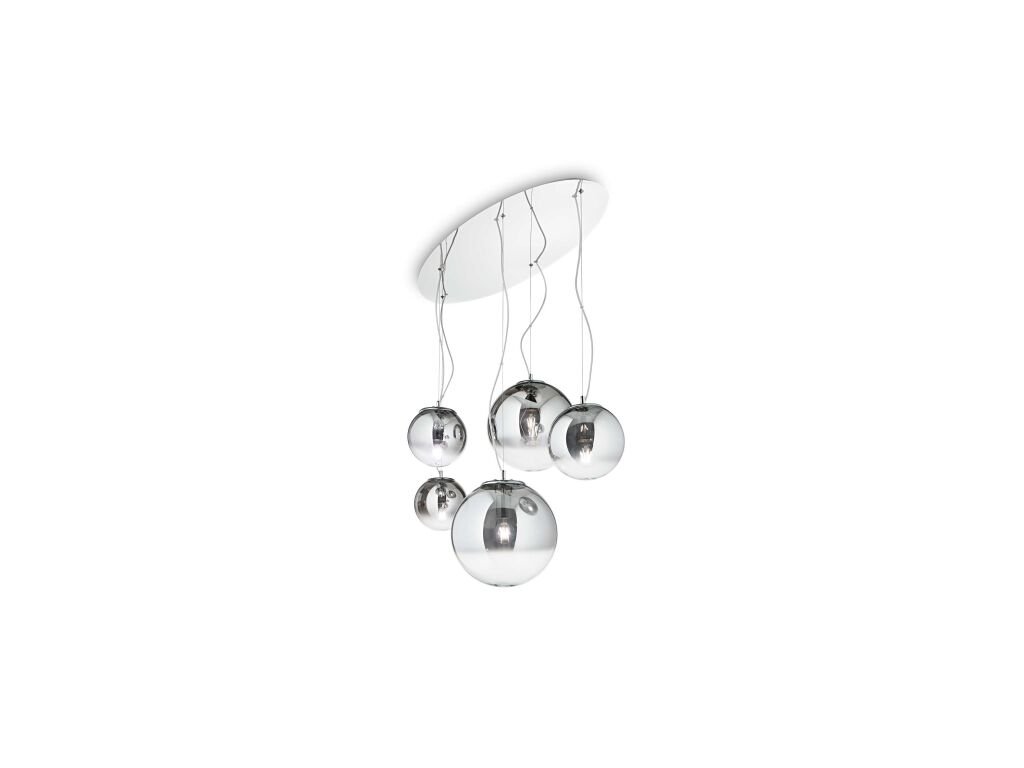 Letící míče, nebo snad vesmírná tělesa na noční obloze? Stačí popustit uzdu fantazii a další přirovnání vyvstanou na mysli při pohledu na světle chromové koule zavěšené na ocelových lancích, která tvoří sice jednoduchý, avšak o nic méně vkusný lustr hodící se do každého interiéru.