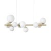 Elegance a ladnost - těmito slovy by se snadno nechal popsat stropní závěsný lustr Perlage. Na tenkých lancích je od stropu zavěšená kovová kontrukce ve zlaté barvě, na kterou těsně přiléhají bílé skleněné koule. Díky tomu, že lustr nejlépe vynikne v dostatečném prostoru, doporučujeme jeho instalaci do vzdušných místností s vyššími stropy.