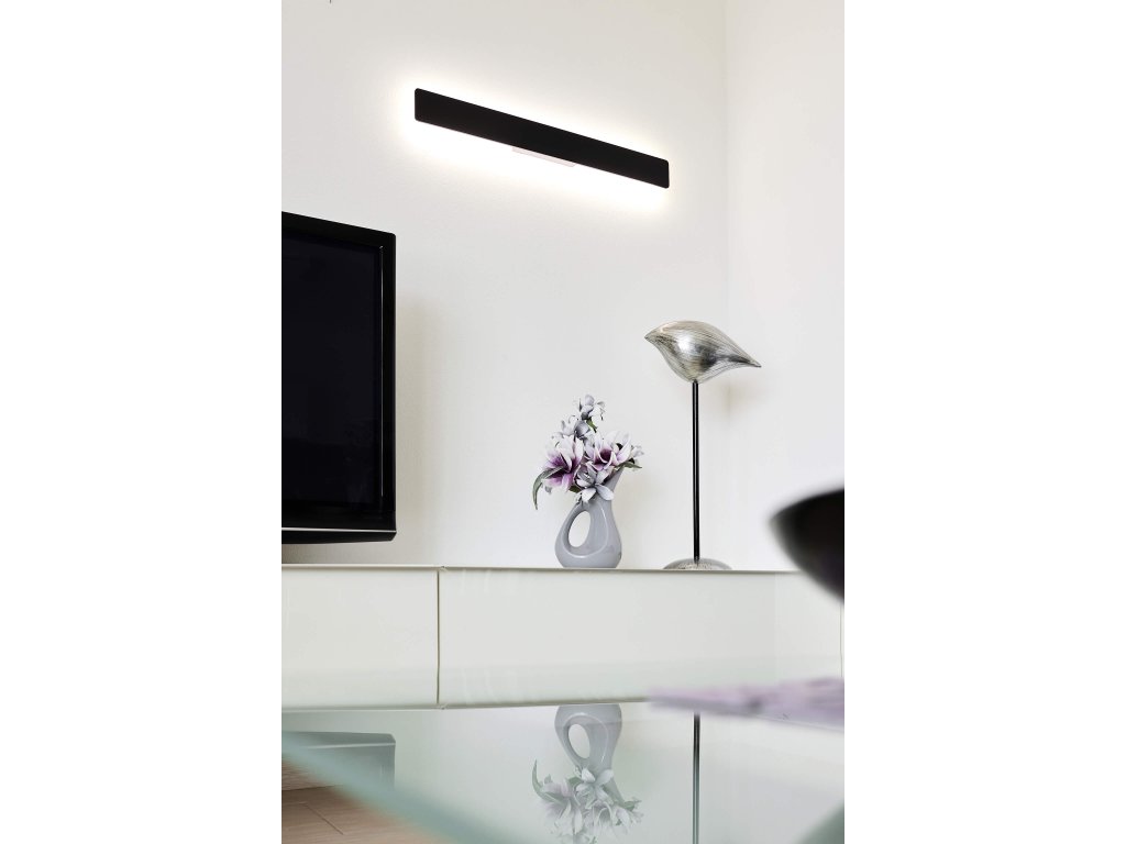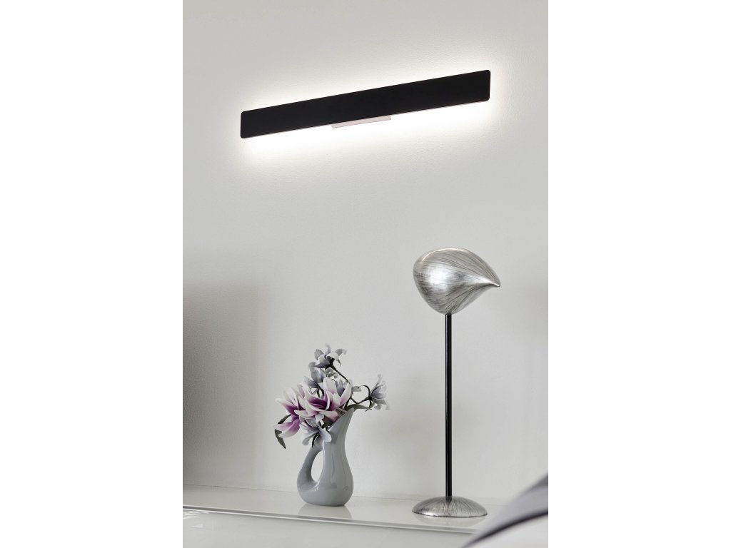 Černé nástěnné svítidlo Alis se svými geometrickými tvary se zaoblenými rohy nepůsobí v interiéru rušivě, přesto zajímavě doplní místnost. Je elegantním řešením nepřímého osvětlení, černá barva ozvláštní místnost.