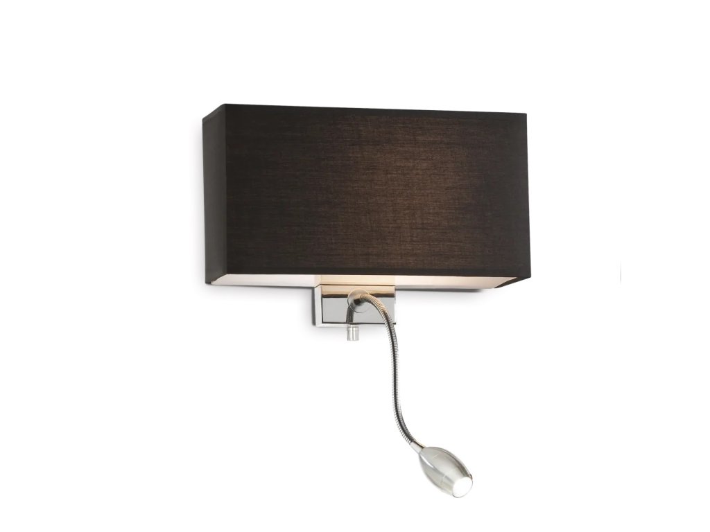 Nástěnné svítidlo Hotel v klasickém designovém provedení. Vhodné je pro použití v ložnici jako hlavní světlo + čtecí lampička. Můžete jej tedy využít hned dvakrát. Jedno stínítko, potažené látkou a zespodu i shora zakončeno matným sklem, poslouží k osvětlení místnosti a druhé svítidlo si můžete libovolně natočit a osvětlit tak určitý bod, ideálně knihu, časopis atd.