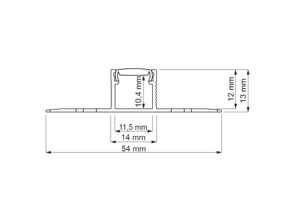 Vnitřní šířka profilu je 11,5 mm, je do něj tedy možné nalepit jeden LED pásek o maximální šířce 10 mm. Vybrat si můžete s naší nabídky LED pásků. Celková šířka profilu je 54 mm.