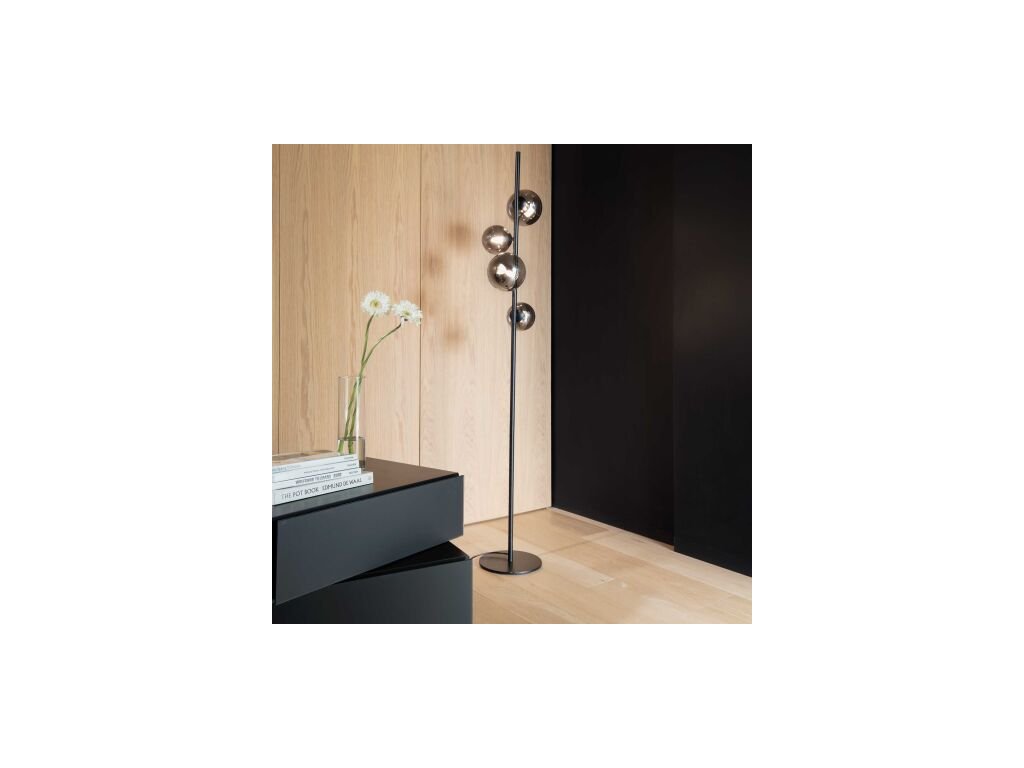Stojací lampa Perlage se skvěle hodí do moderně zařízených interiérů. Kulatá základna a rám jsou zhotoveny z kvalitního kovu se zlatou povrchovou úpravou doplněnou o čtyři kulaté difuzory z pyrexového skla v bílé barvě.