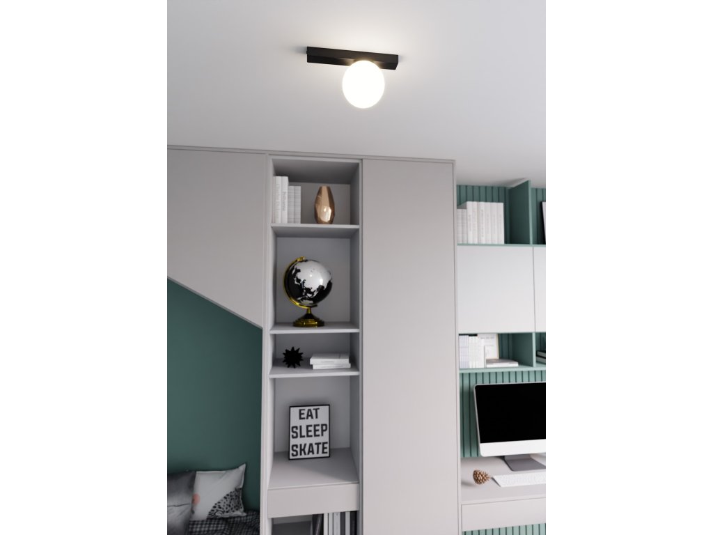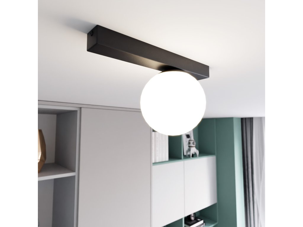 Stropní svítidlo Fit v zajímavém designovém provedení. Svítidlo je tvořeno bílou, skleněnou koulí a černou kovovou základnou. Osaďte LED žárovkou s paticí E14 - žárovka není součástí balení.