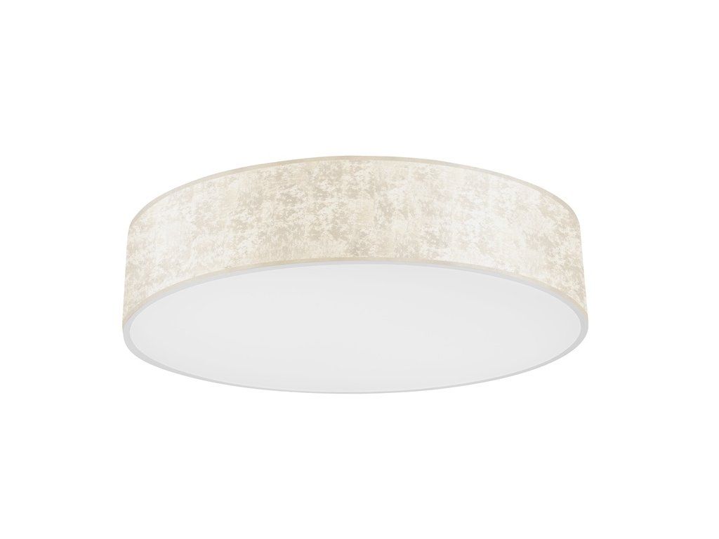 Stropní svítidlo Reny s textilním lemem jemné, smetanové barvy a kvalitním LED svícením. Svítidlo je vyrobeno z kovu, který je oblepený textilním pásem. Kryt je vyroben z plastu, optimálně rozprostírá svit.