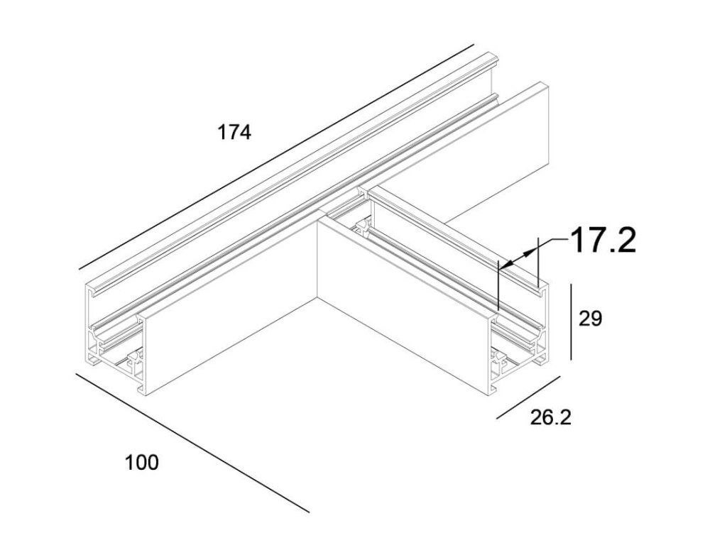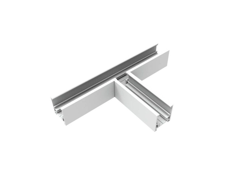 Rohová spojka ve tvaru písmeně T, pevná v bílé barvě. Slouží pro tvorbu obrazce tvaru T vytvořeného z lišt / profilů magnetického lištového systému. Spojka je použitelná POUZE pro lištu Line Surface L.